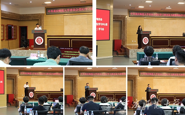 张艳指出,开展党纪学习教育是贯彻落实习近平总书记视察重庆重要讲话重要指示精神、全面参与现代化新重庆建设、奋力推进学校事业高质量发展的必然要求,是弘扬党的光荣传统、保持马克思主义政党先进性和纯洁性的时代使命,是统一全党意志行动、实现强国建设民族复兴的现实需要,是坚持问题导向、推动学校管党治党全面提质提效的具体行动。各级党组织和广大党员干部要切实把思想和行动统一到党中央决策部署上来,同完成学校的中心工作和重点任务紧密结合起来,做好四个方面的工作。